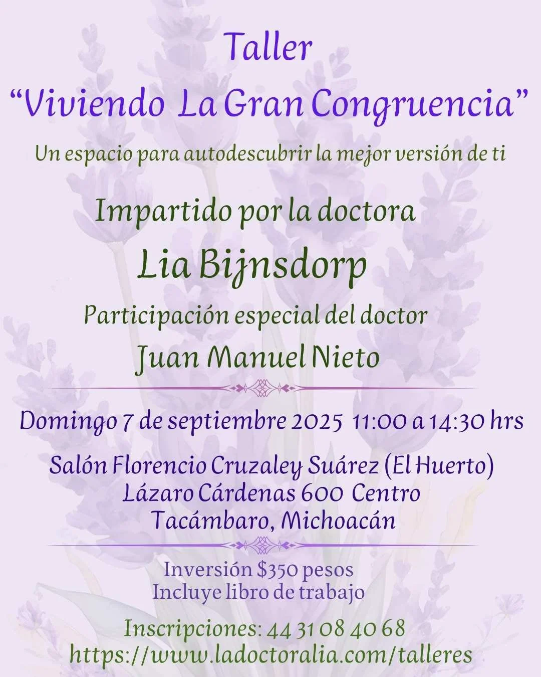 👉🏼 ¡Ven al Taller “Viviendo La Gran Congruencia” en Tacámbaro! ✨